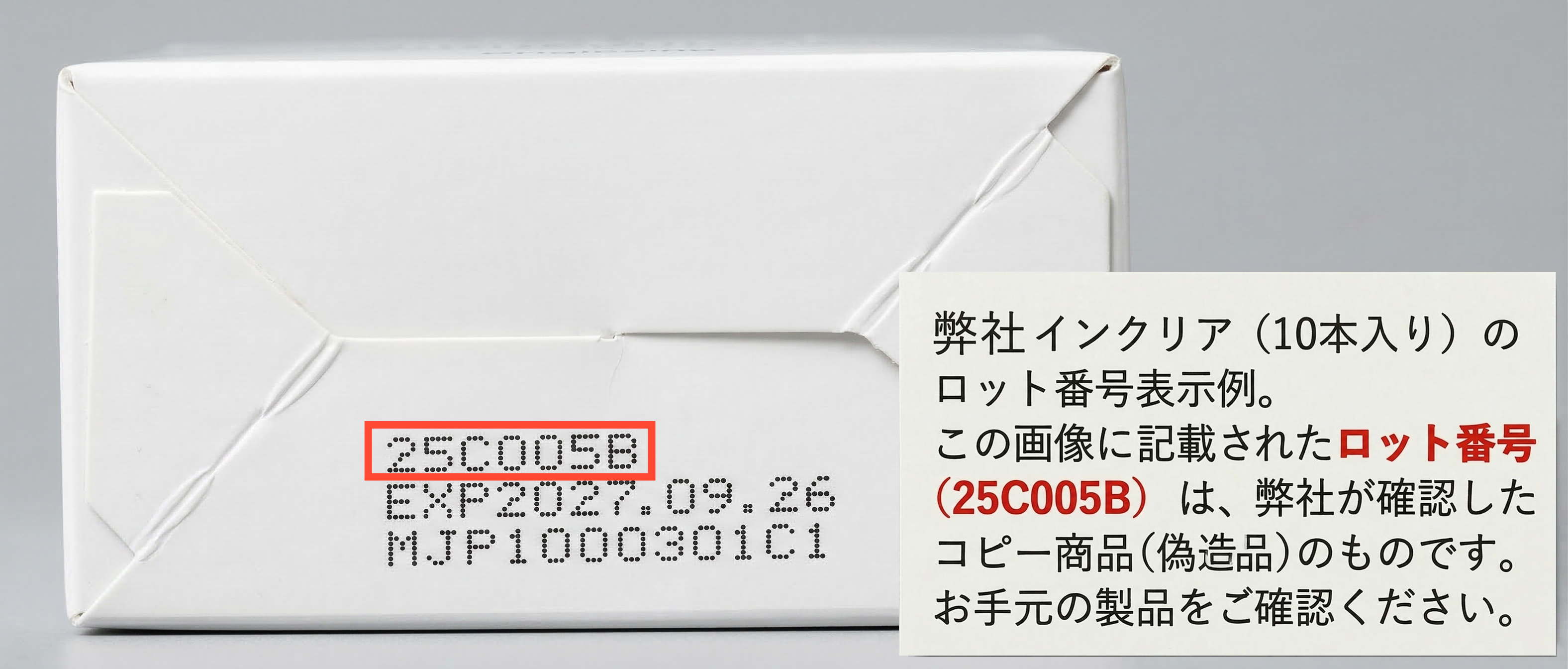 該当ロット番号: 25C005B (商品箱の底面に記載)